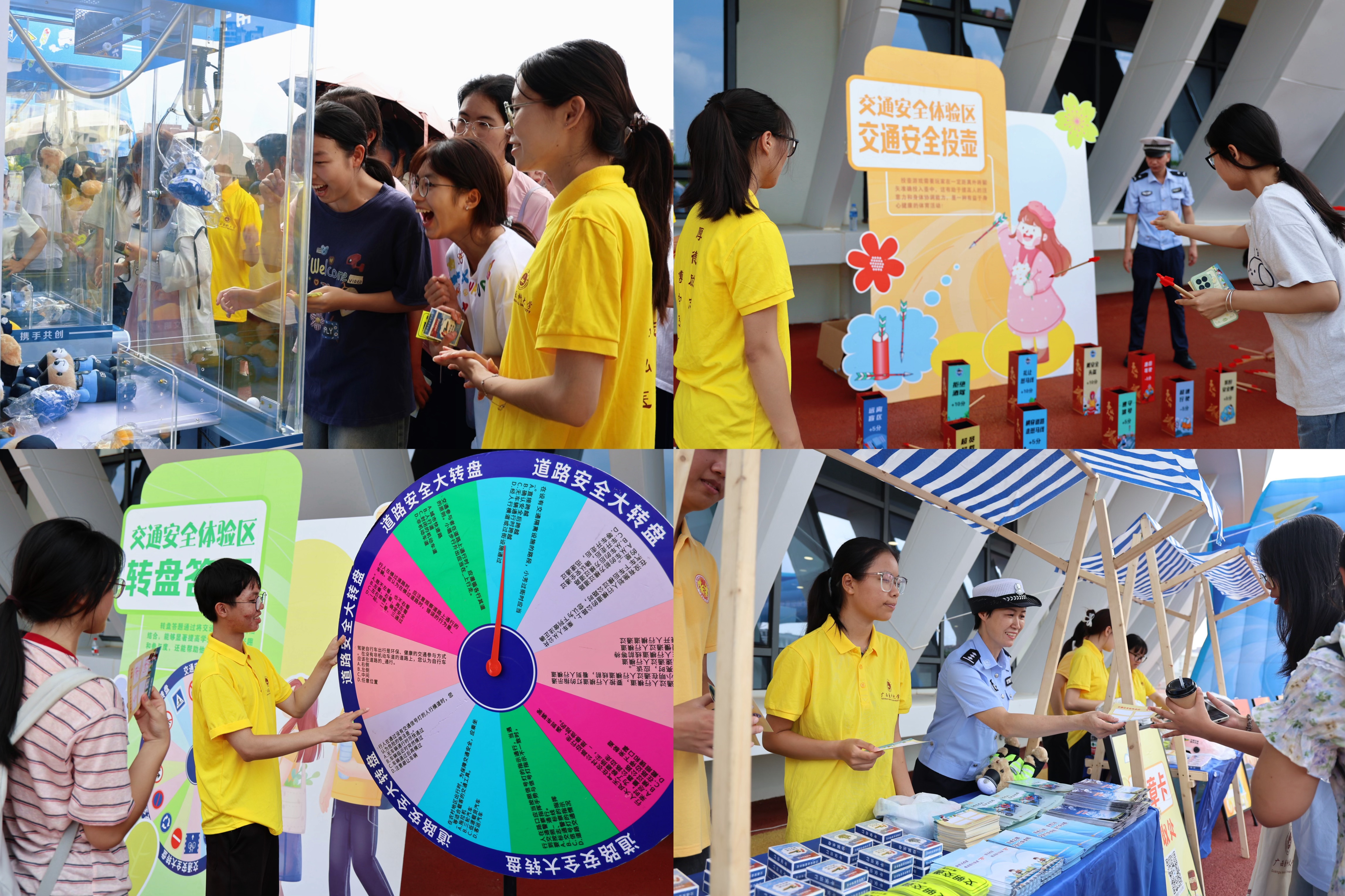 本次活动由交通安全知识讲座和交通安全集市两部分组成。在交通安全知识讲座中,南宁交警支队宣传科指导员吴舜以其深厚的专业功底和风趣幽默的授课方式,为学生们带来了一场精彩纷呈的交通安全课。吴舜不仅详细讲解了交通规则、出行风险及应对技巧,还通过真实案例分析,让学生们深刻认识到违反交通规则的严重后果,有效帮助学子们筑牢交通安全认知防线。在交通安全集市环节,现场设置转盘答题、交通场景模拟体验等趣味项目,学生们通过参与答题检验知识掌握情况,在模拟场景中实操交通避险技巧。沉浸式的互动形式有效提升了青年学生的文明交通和安全出行意识,学生们纷纷表示,将把学到的交通安全知识运用到实际生活中,做到知行合一,为创建平安校园贡献自己的力量。