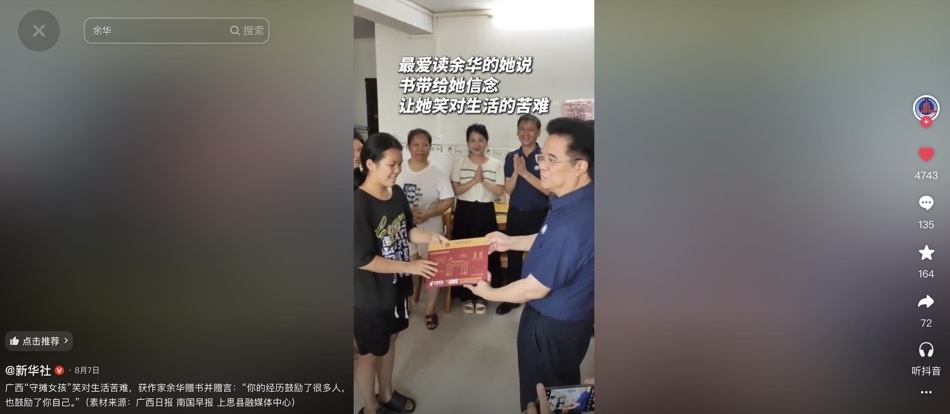 新华社:广西“守摊女孩”笑对生活苦难,获作家余华赠书并赠言:“你的经历鼓励了很多人,