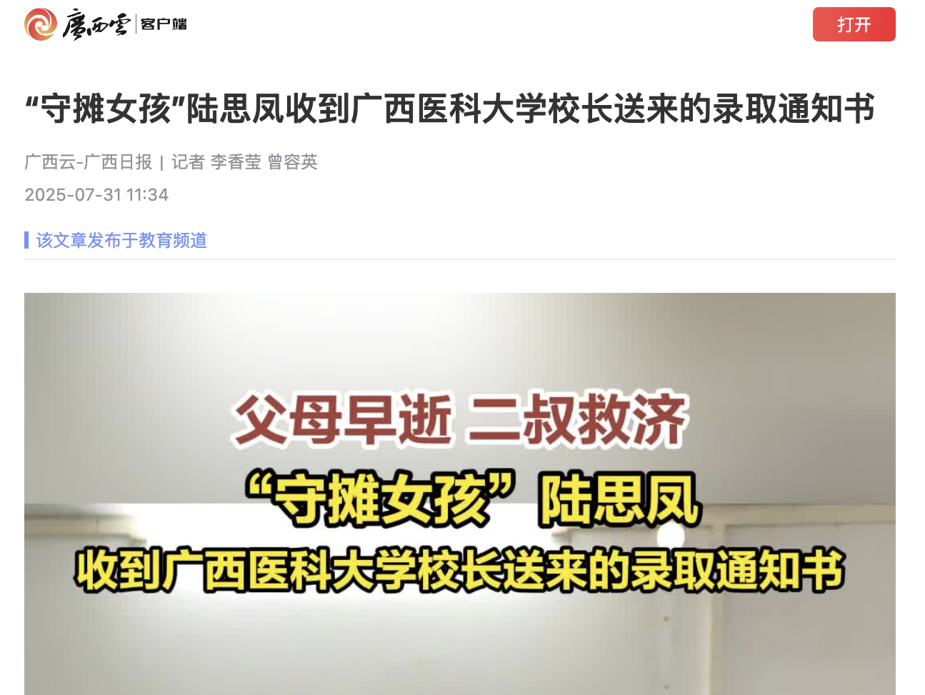 大学校长亲自送去录取通知书!广西“守摊女孩”的故事,看哭了……