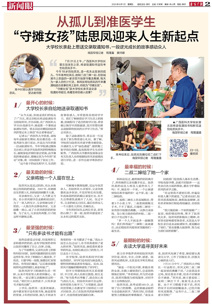 从孤儿到准医学生“守摊女孩”陆思凤迎来人生新起点大学校长亲赴上思送交录取通知书,一段逆光成长的故事感动众人